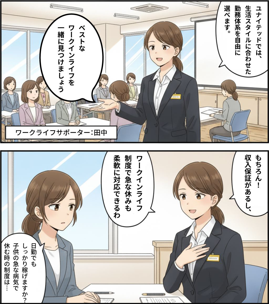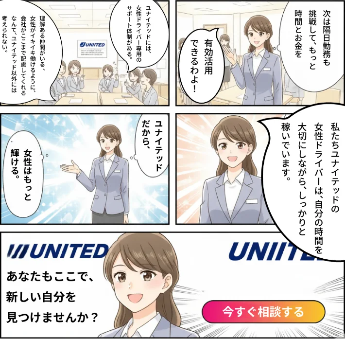 ユナイテッドでは、入社後一定期間の「給与保証」があります。さらに高単価なプレミアム業務で、歩合でも安定した収入が可能です。